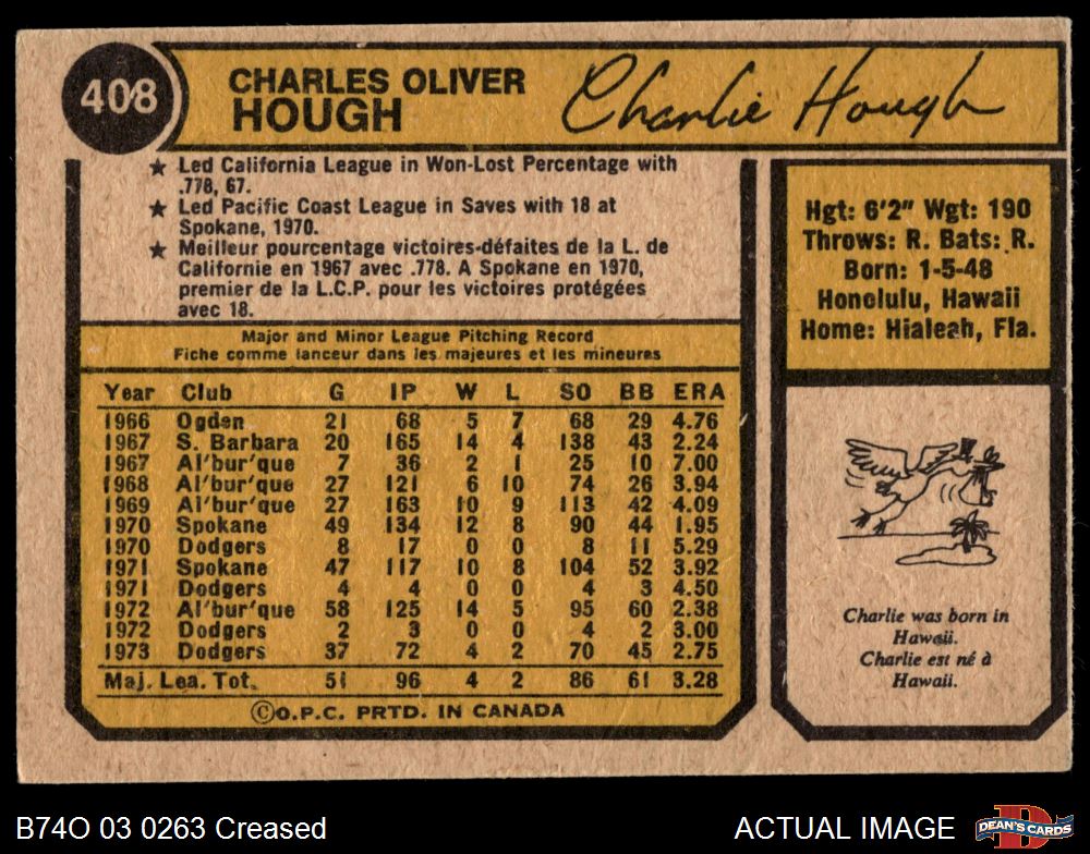 1974 O-Pee-Chee #408 Charlie Hough Front Thumbnail