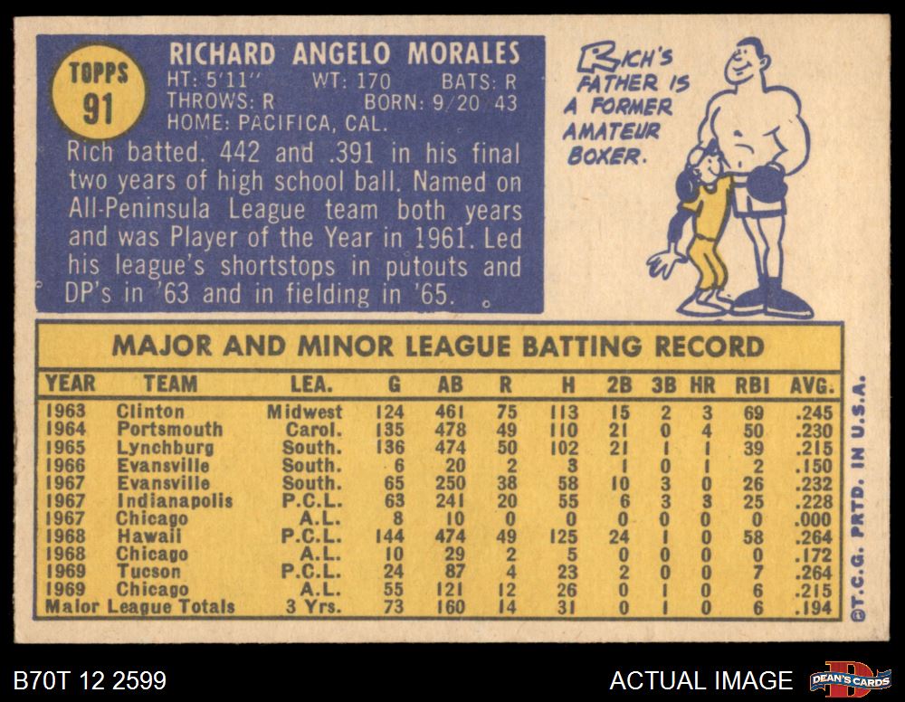 1970 Topps #91 Rich Morales 7.5 - NM+