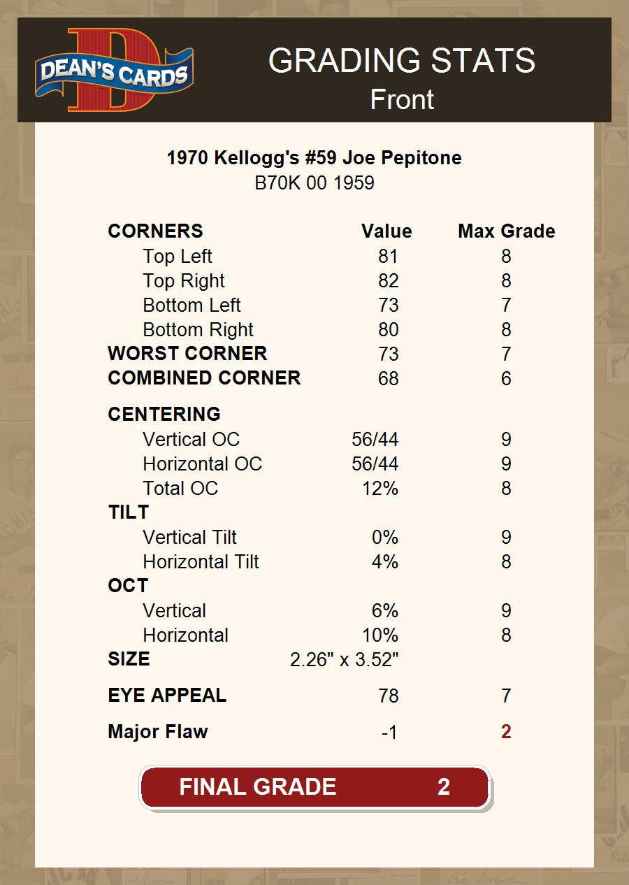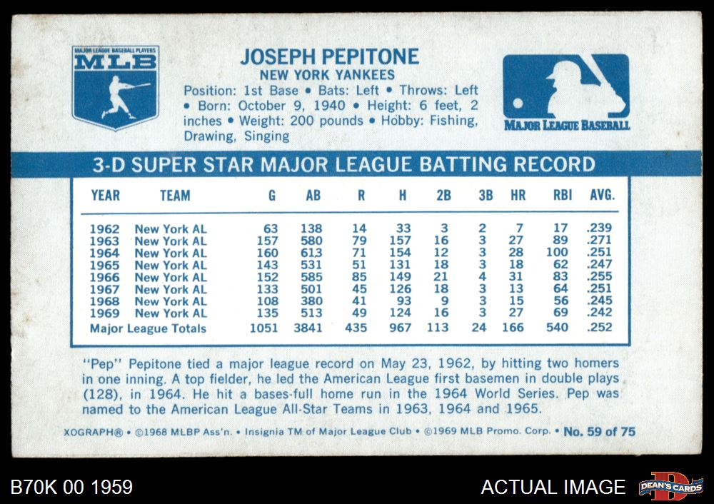 1970 Kellogg's #59 Joe Pepitone 2 - GOOD
