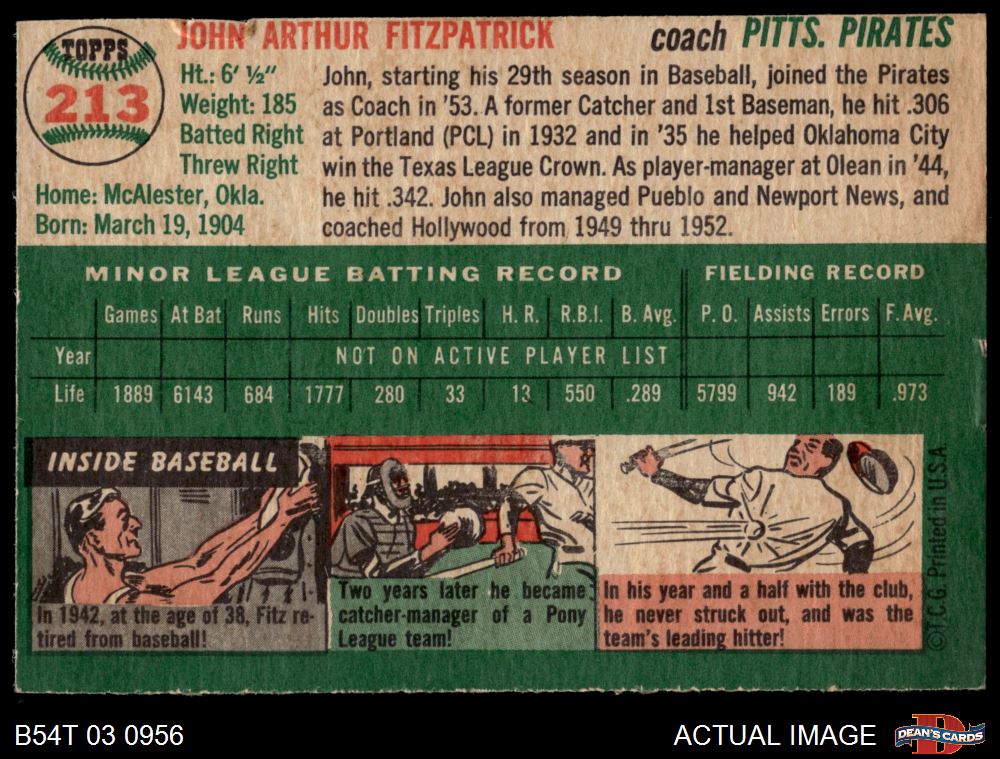 1954 Topps #213 John Fitzpatrick 4 - VG/EX