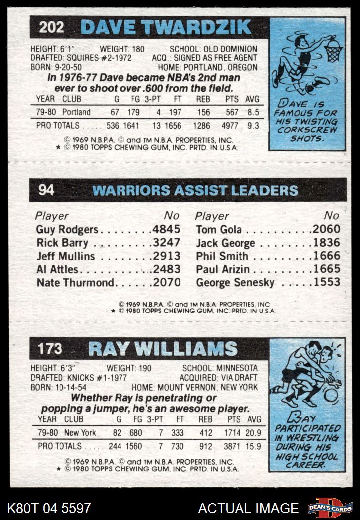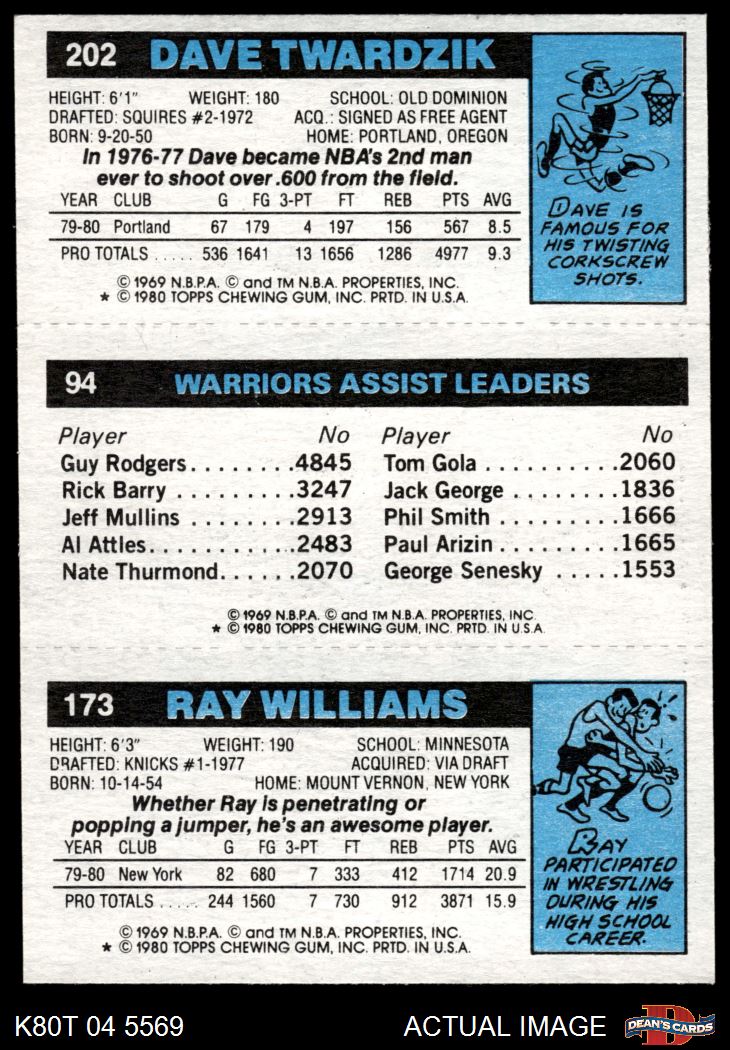 1980 Topps - Ray Williams / John Lucas / Dave Twardzik 173 / 94 / 202 6 - EX/MT