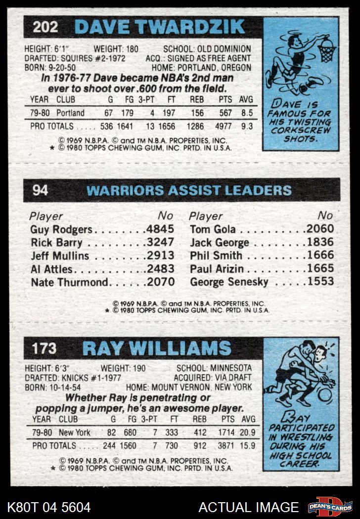 1980 Topps - Ray Williams / John Lucas / Dave Twardzik 173 / 94 / 202 7.5 - NM+