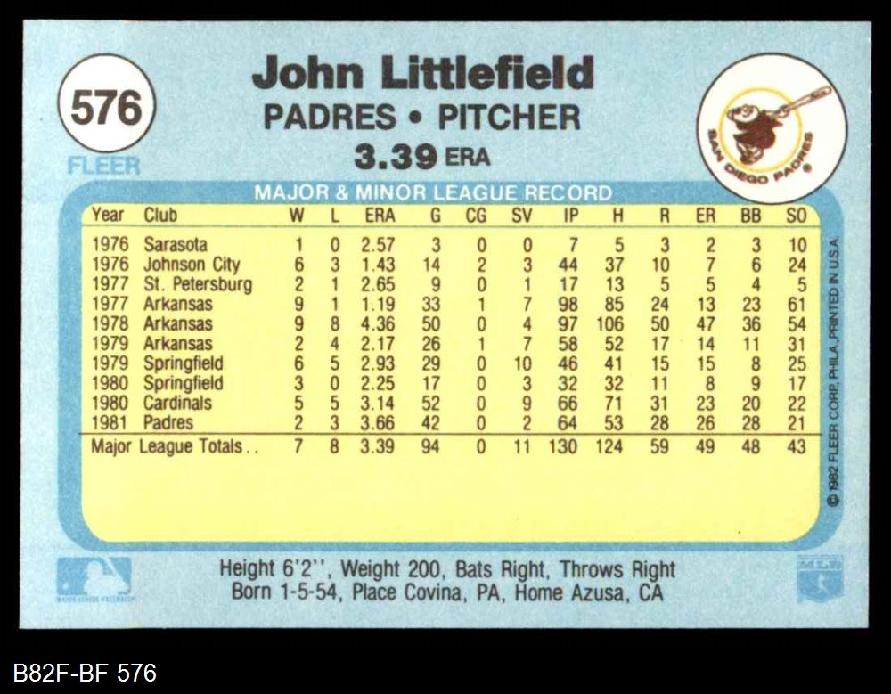 1982 Fleer #576 A John Littlefield