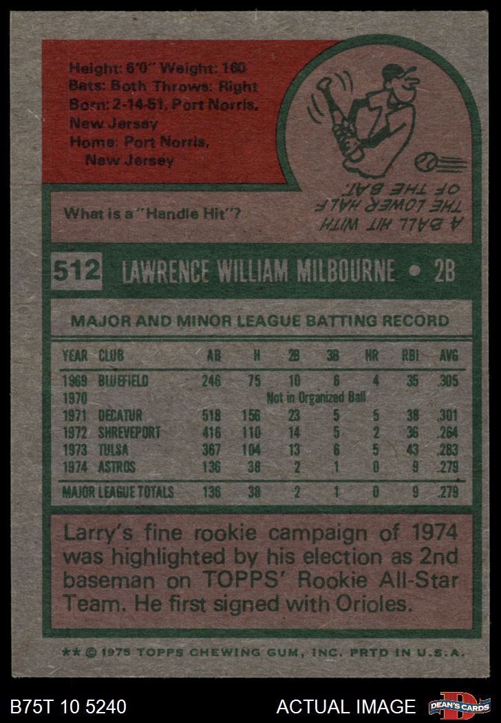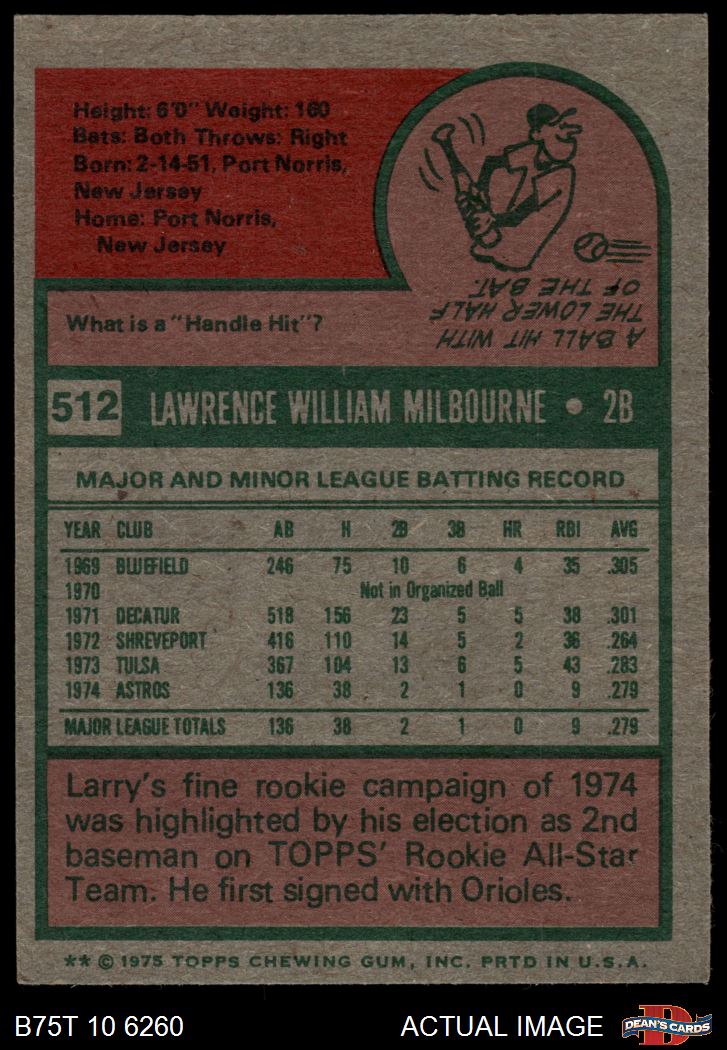 1975 Topps #512 Larry Milbourne 6 - EX/MT
