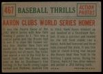 1959 Topps #467 - Hank Aaron Clubs World Series Homer 3 - VG