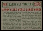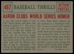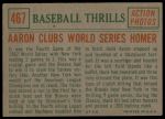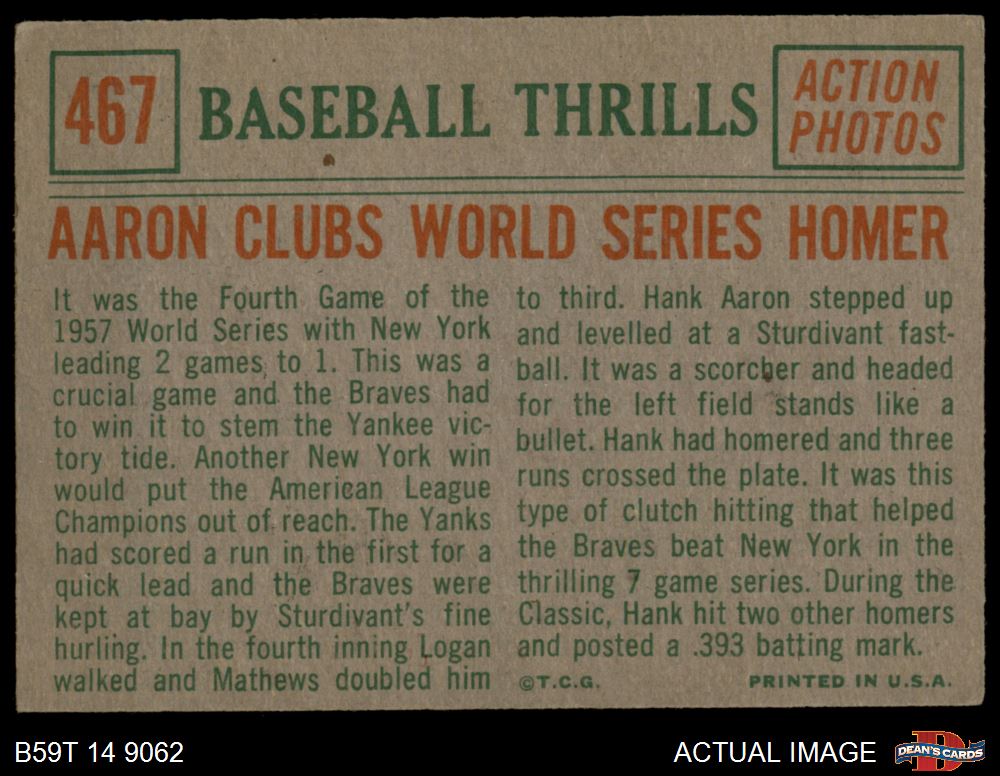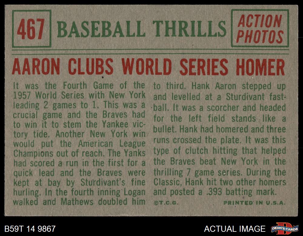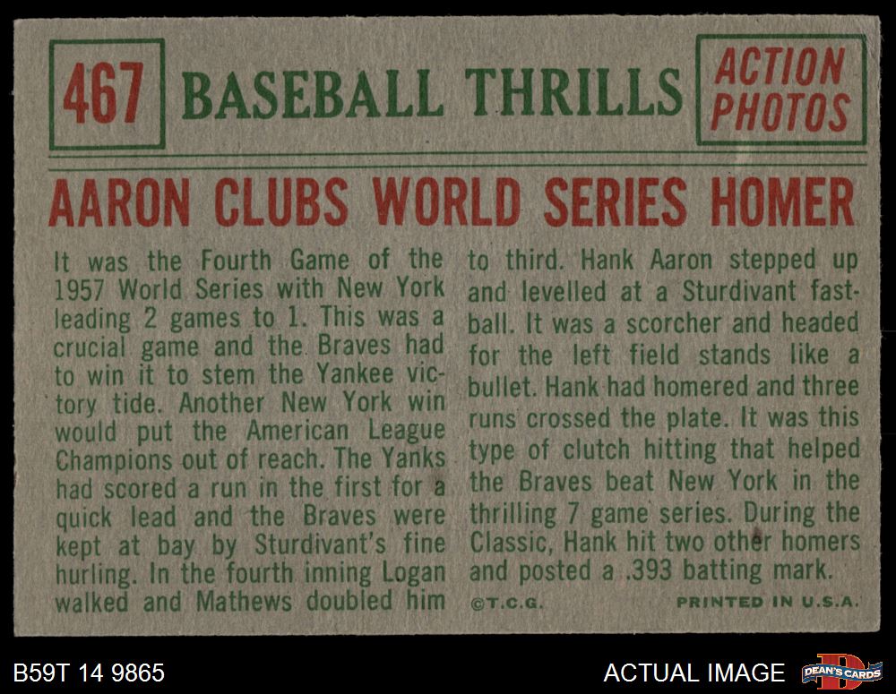 1959 Topps #467 - Hank Aaron Clubs World Series Homer 4 - VG/EX