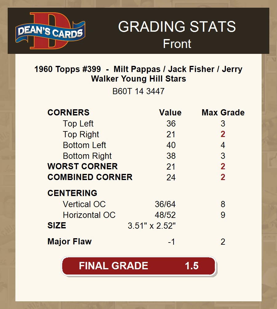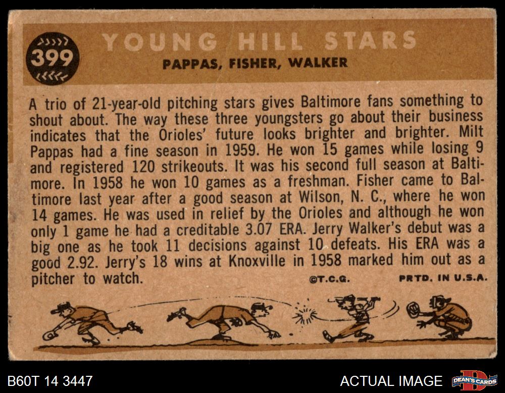 1960 Topps #399 - Milt Pappas / Jack Fisher / Jerry Walker Young Hill Stars 1.5 - FAIR