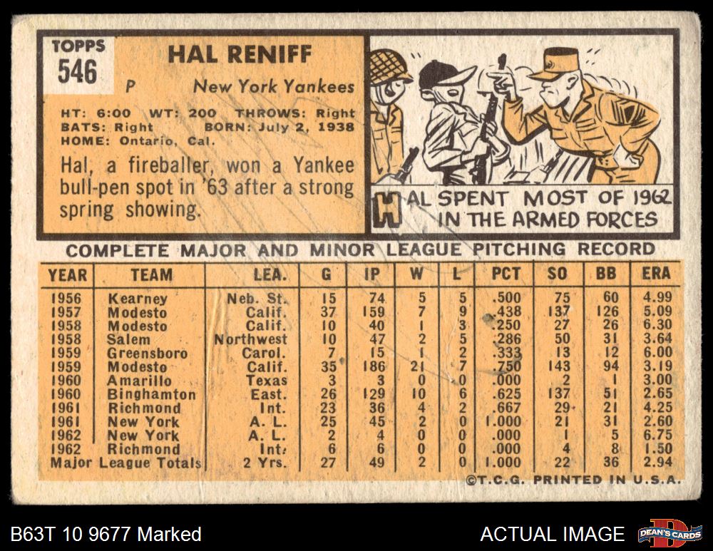 1963 Topps #546 Hal Reniff 1.5 - FAIR