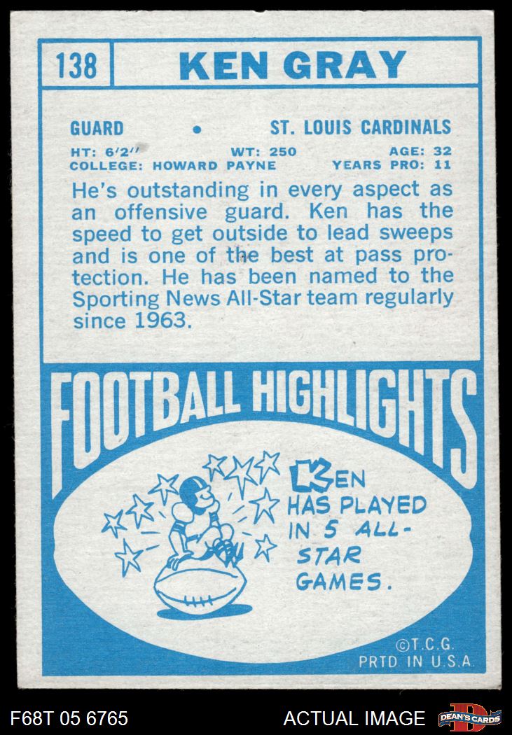 1968 Topps Football Cards (2,556 available)1968 Topps Cardinals-FB (136 available)