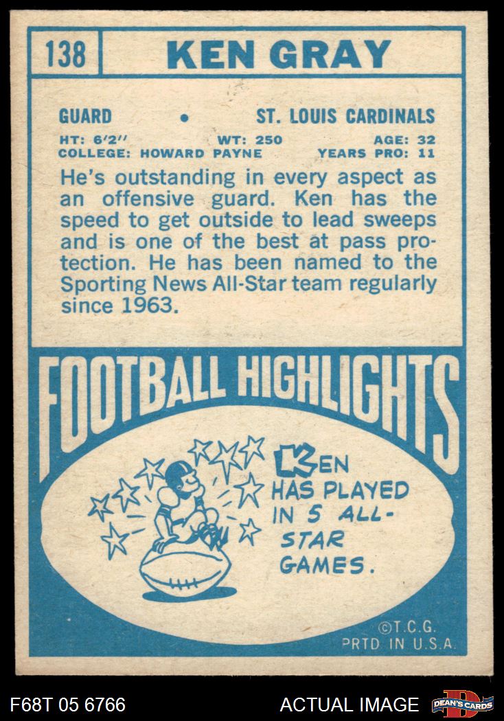 1968 Topps #138 Ken Gray 5.5 - EX+