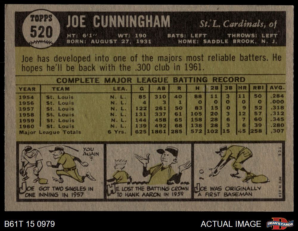 1961 Topps #520 Joe Cunningham 6.5 - EX/MT+