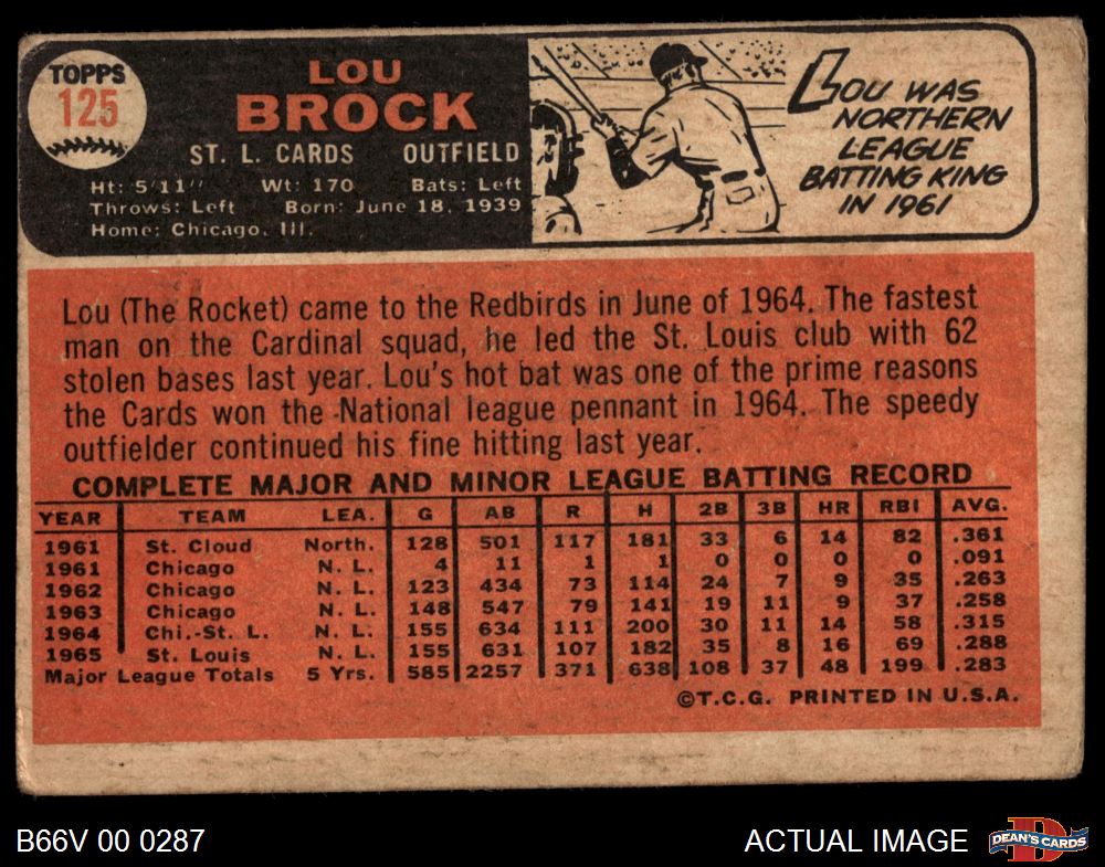 1966 Topps Venezuelan #125 Lou Brock 1.5 - FAIR