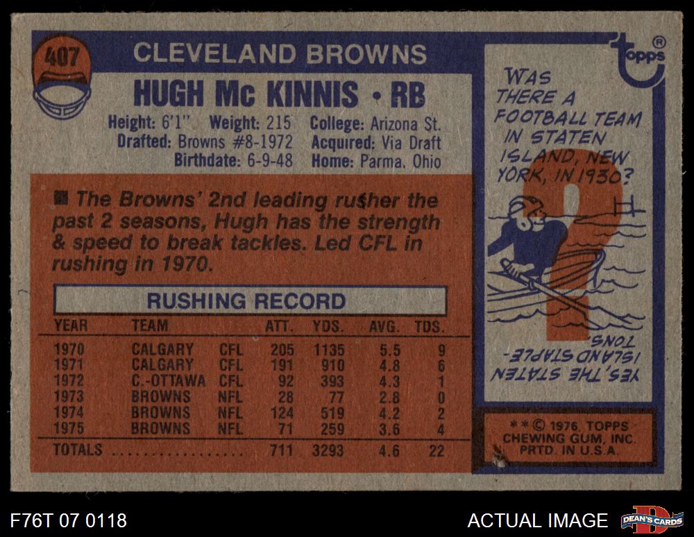 1976 Topps #407 Hugh McKinnis 5.5 - EX+