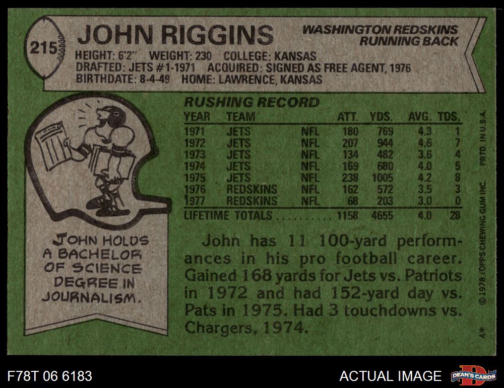 1978 Topps #215 John Riggins 6 - EX/MT
