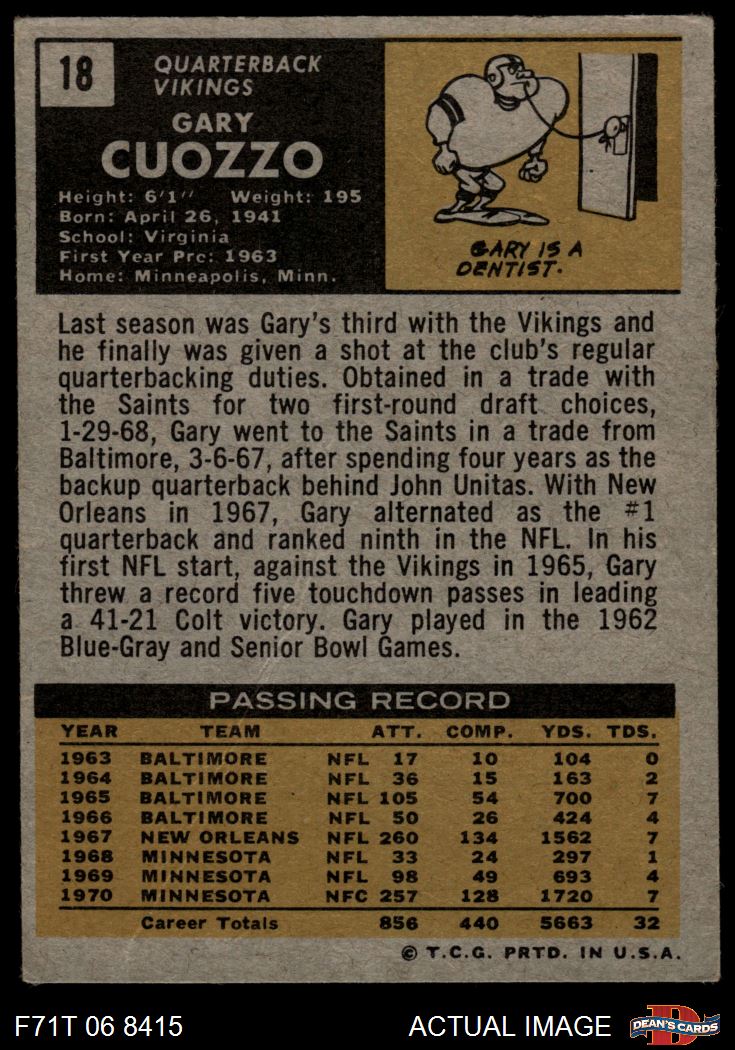 1971 Topps #18 Gary Cuozzo 2 - GOOD