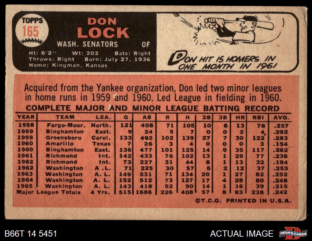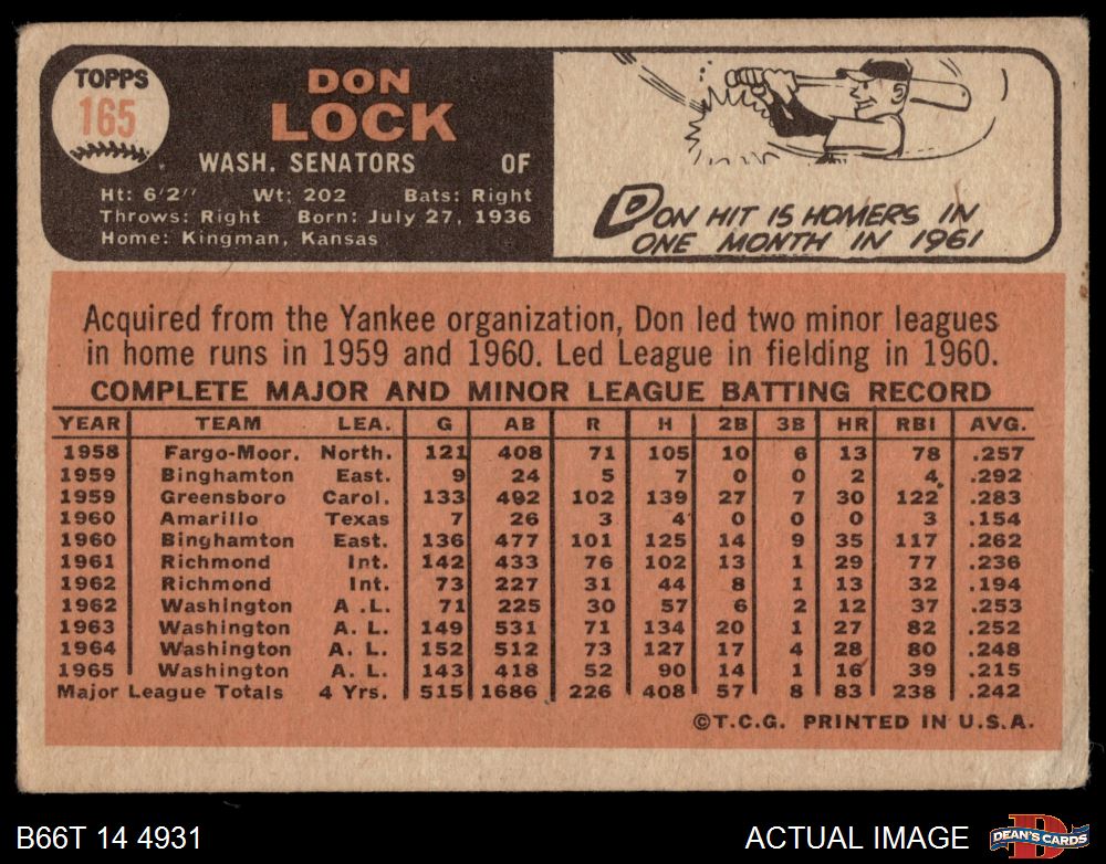 1966 Topps #165 Don Lock 2 - GOOD