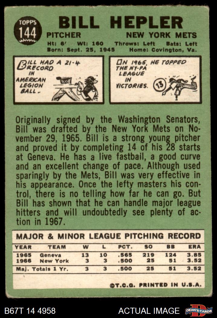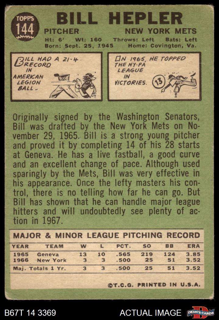 1967 Topps #144 Bill Hepler 1.5 - FAIR