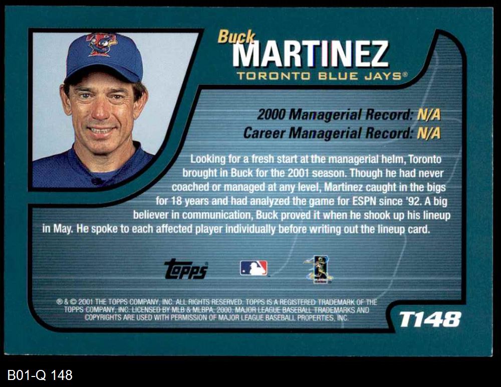 2001 Topps Traded #148 T Buck Martinez 8 - NM/MT