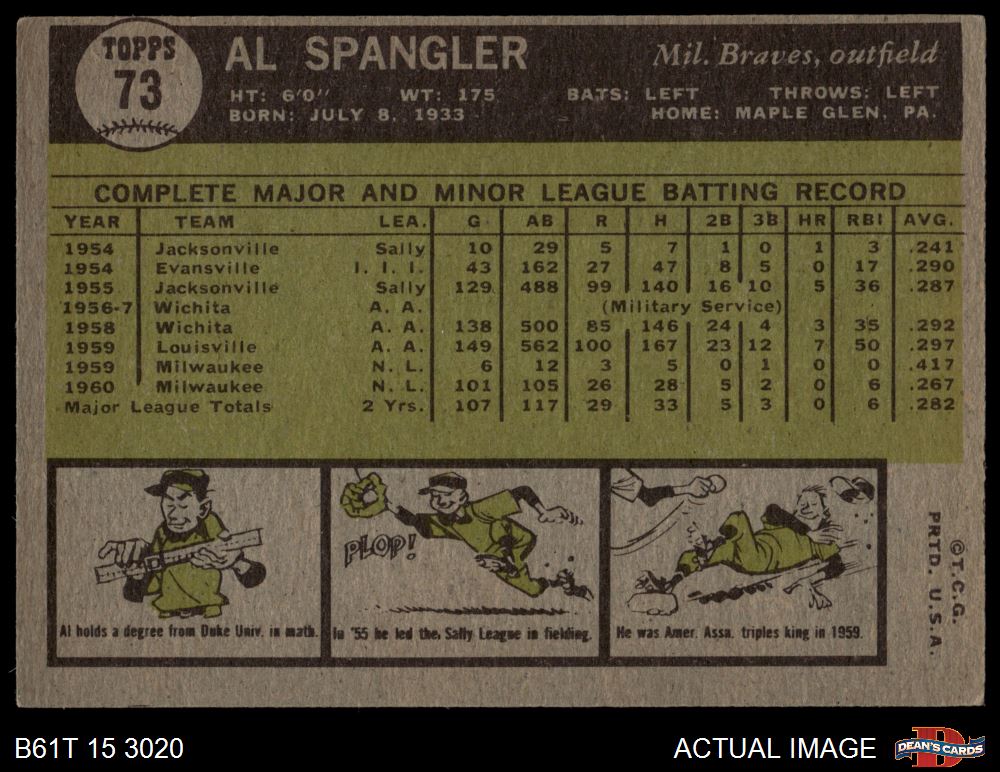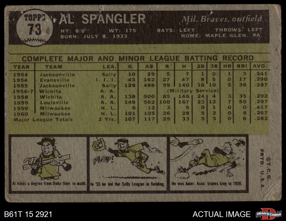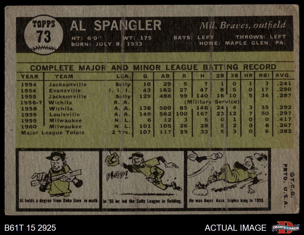 1961 Topps #73 Al Spangler 2 - GOOD