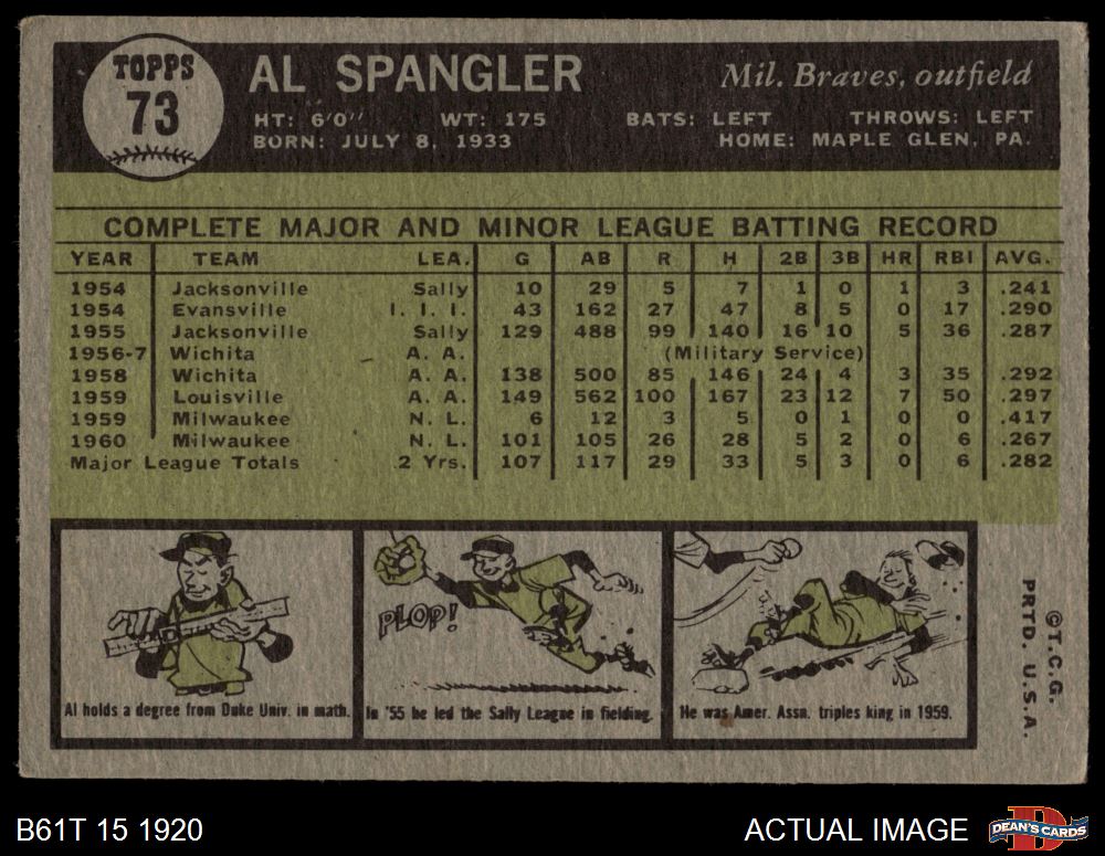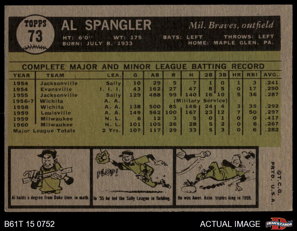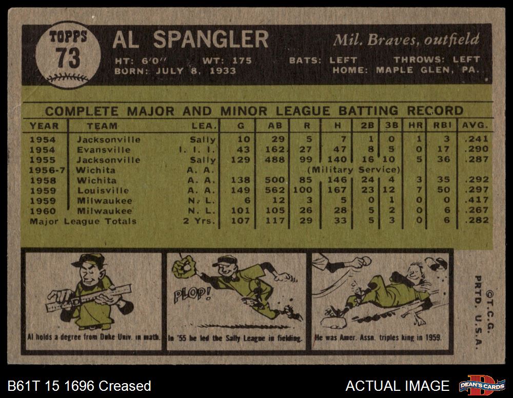 1961 Topps #73 Al Spangler 3 - VG