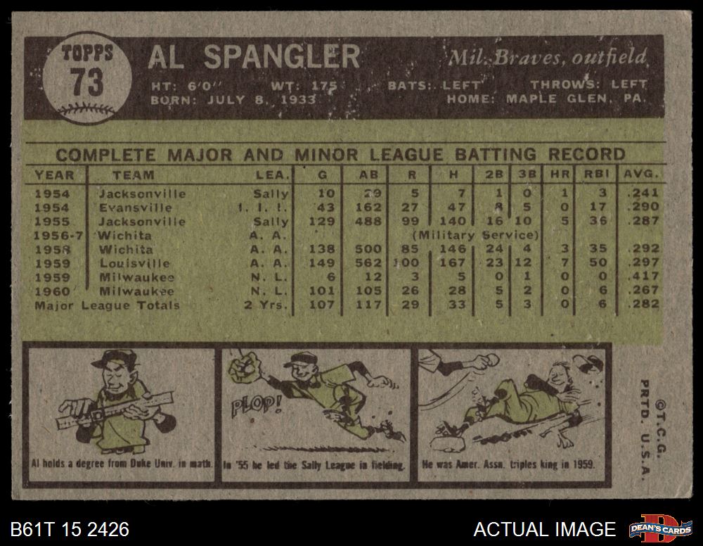 1961 Topps #73 Al Spangler 4 - VG/EX