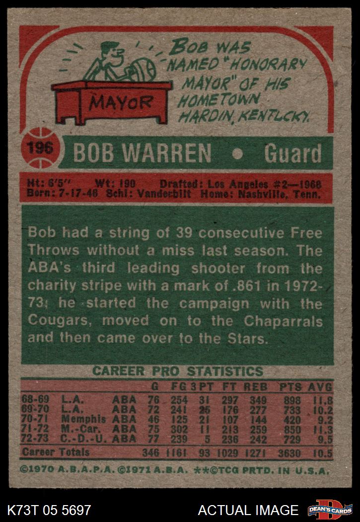 1973 Topps #196 Bob Warren 6.5 - EX/MT+