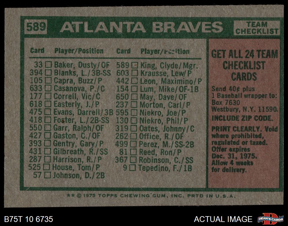 1975 Topps #589 - Clyde King Braves Team Checklist 4 - VG/EX