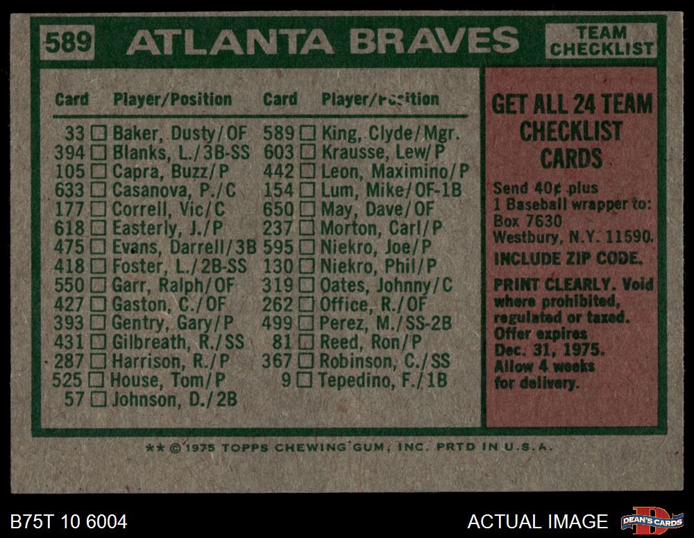 1975 Topps #589 - Clyde King Braves Team Checklist 5 - EX