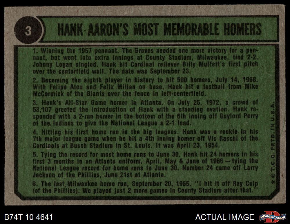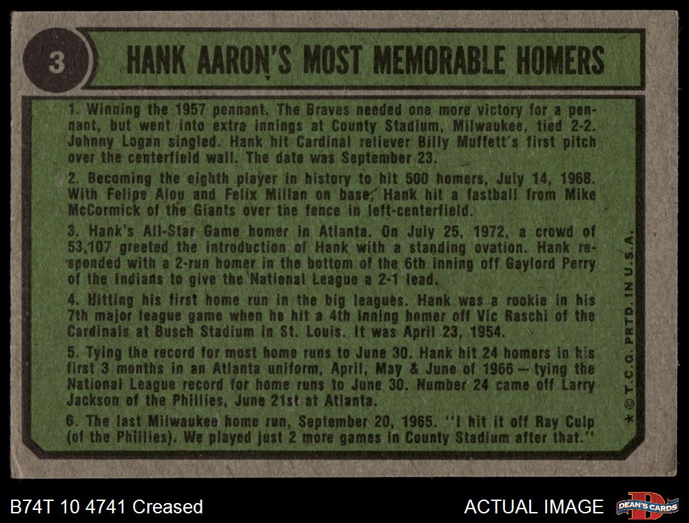 1974 Topps #3 - Hank Aaron Special 1958-61 2 - GOOD