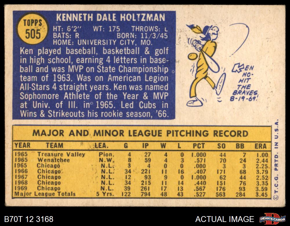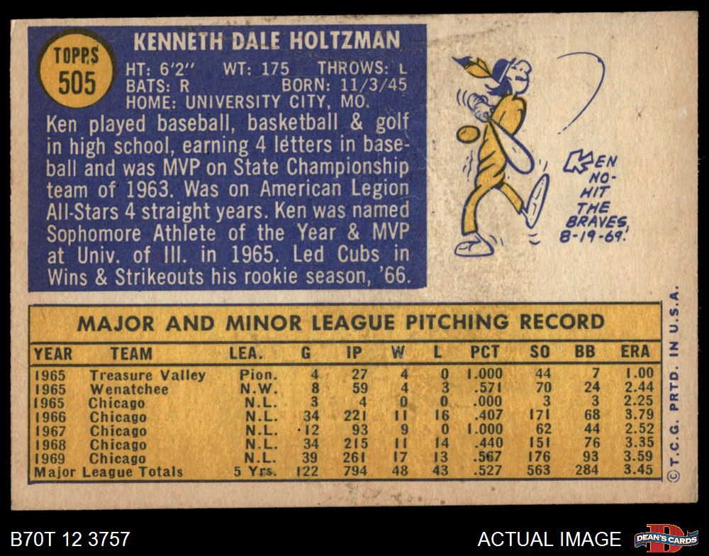 1970 Topps #505 Ken Holtzman 4 - VG/EX