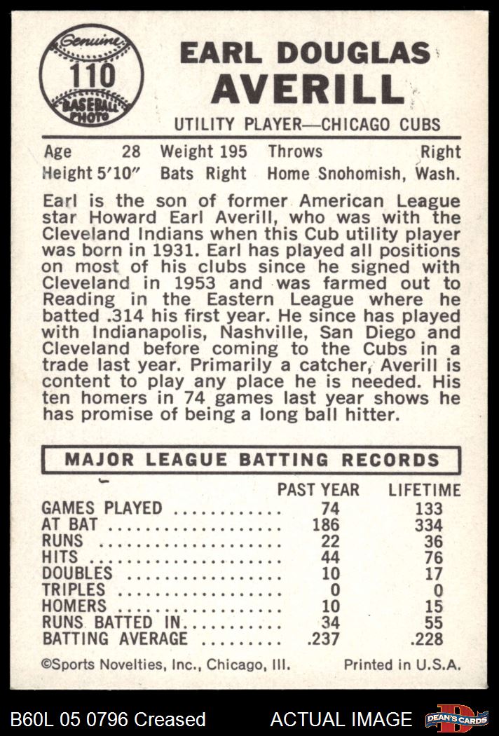 1960 Leaf #110 Earl Averill Jr. Front Thumbnail