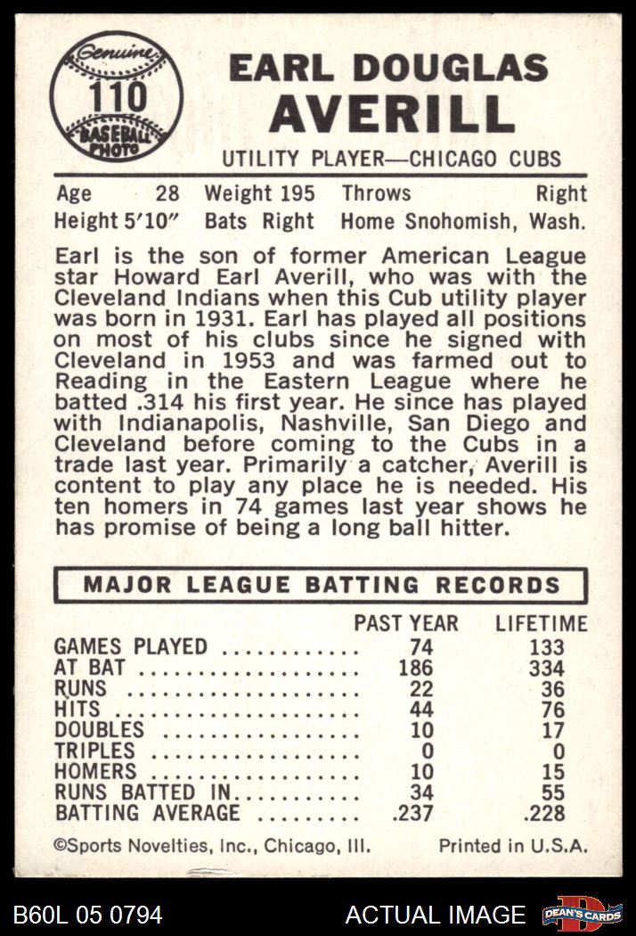 1960 Leaf #110 Earl Averill Jr. 4 - VG/EX