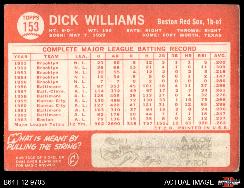 1964 Topps #153 Dick Williams 2.5 - GD+