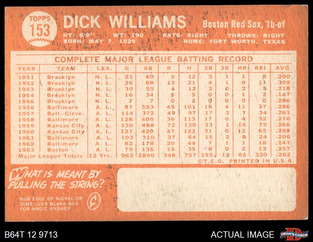 1964 Topps #153 Dick Williams 3 - VG