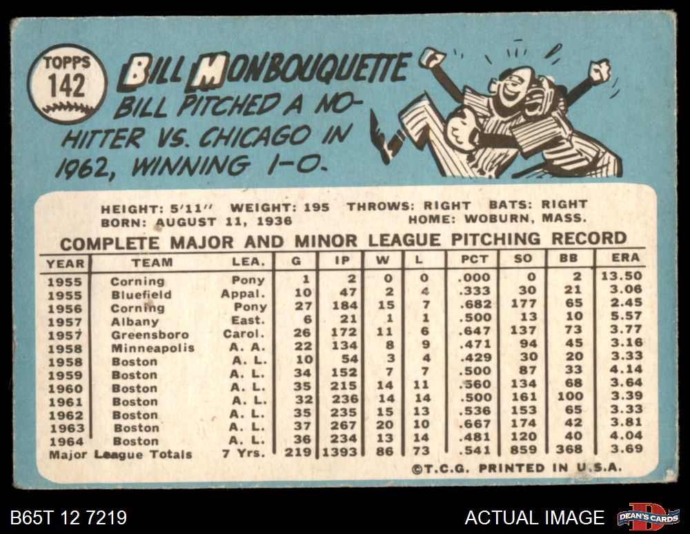 1965 Topps #142 Bill Monbouquette