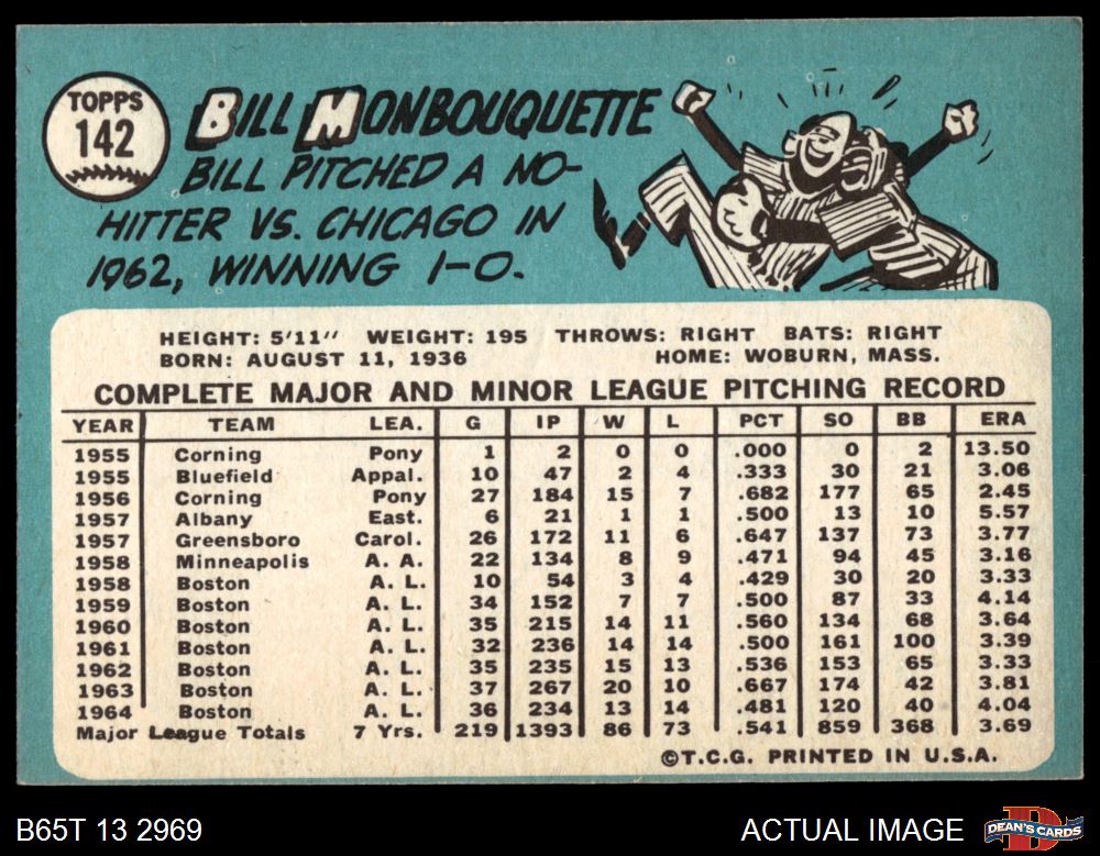1965 Topps #142 Bill Monbouquette 5 - EX