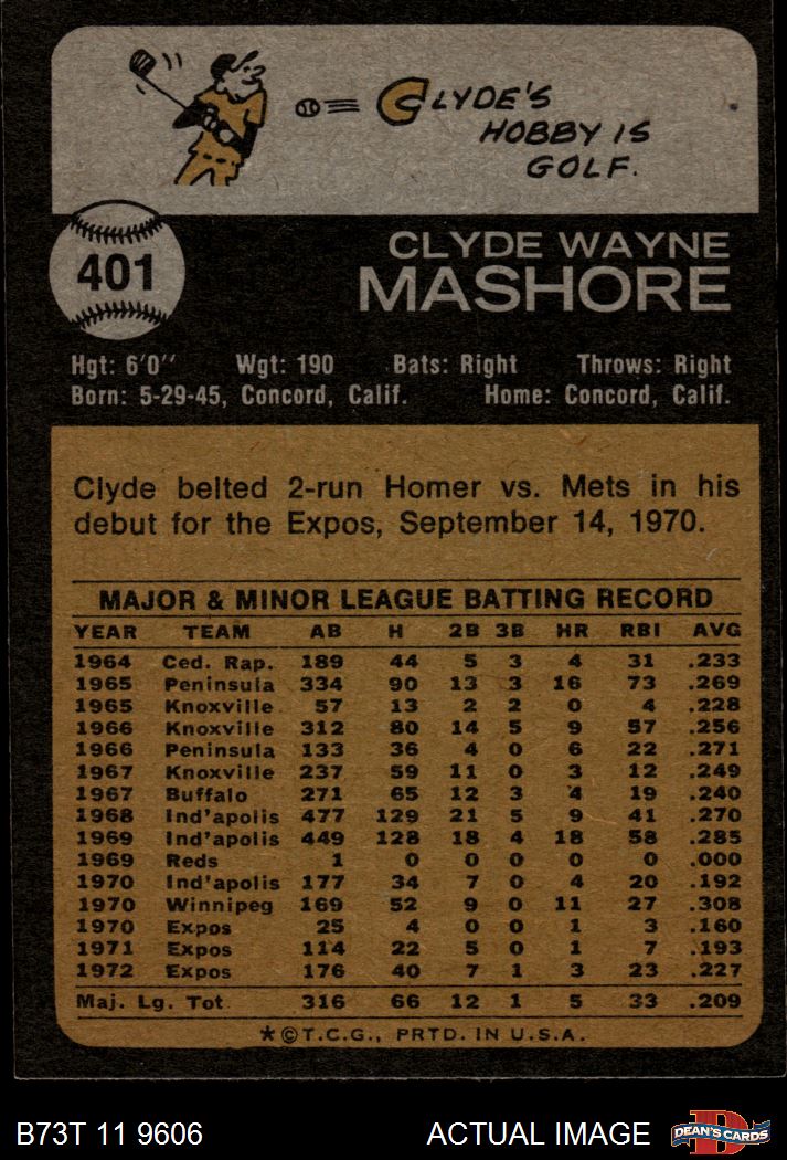 1973 Topps #401 Clyde Mashore