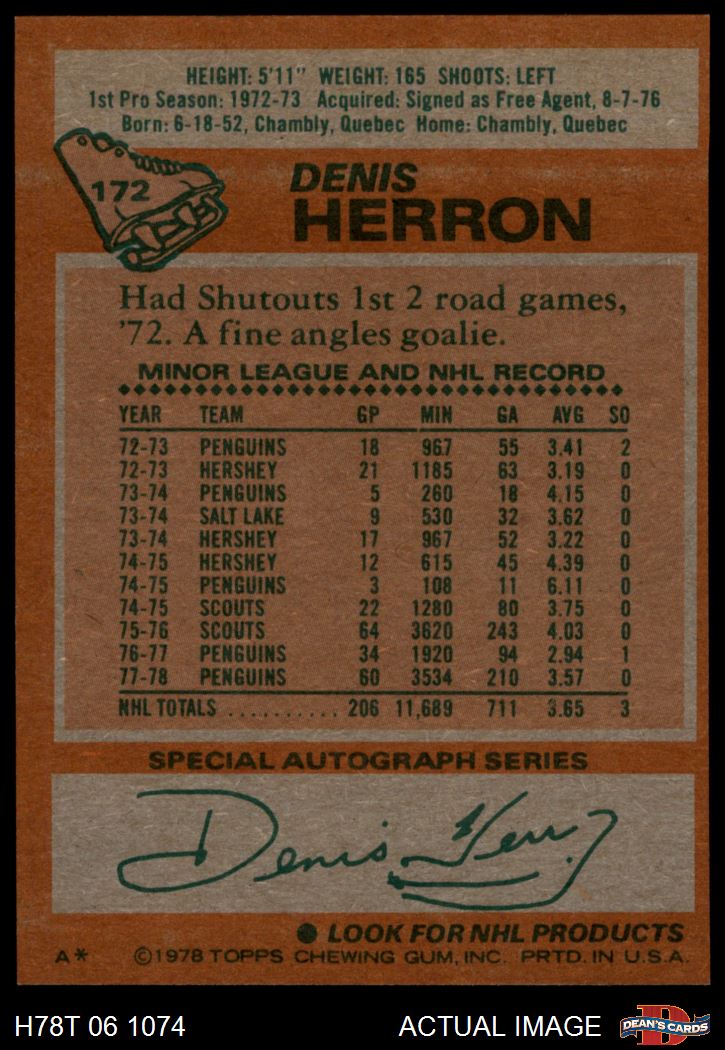 1978 Topps #172 Denis Herron