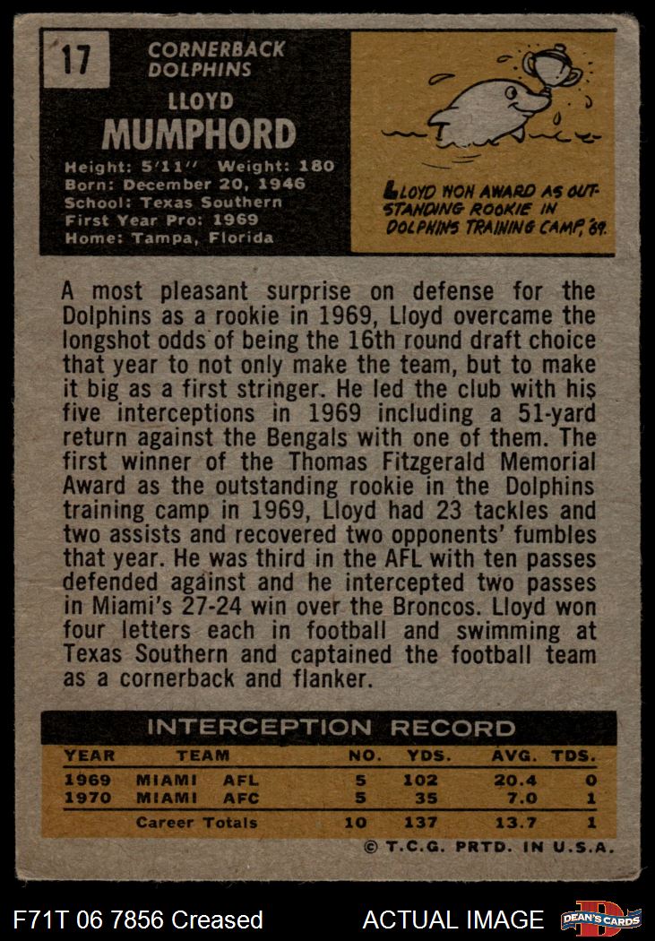 1971 Topps #17 Lloyd Mumphord Front Thumbnail
