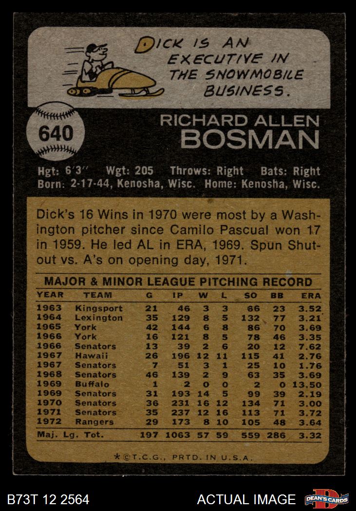 1973 Topps #640 Dick Bosman 7.5 - NM+