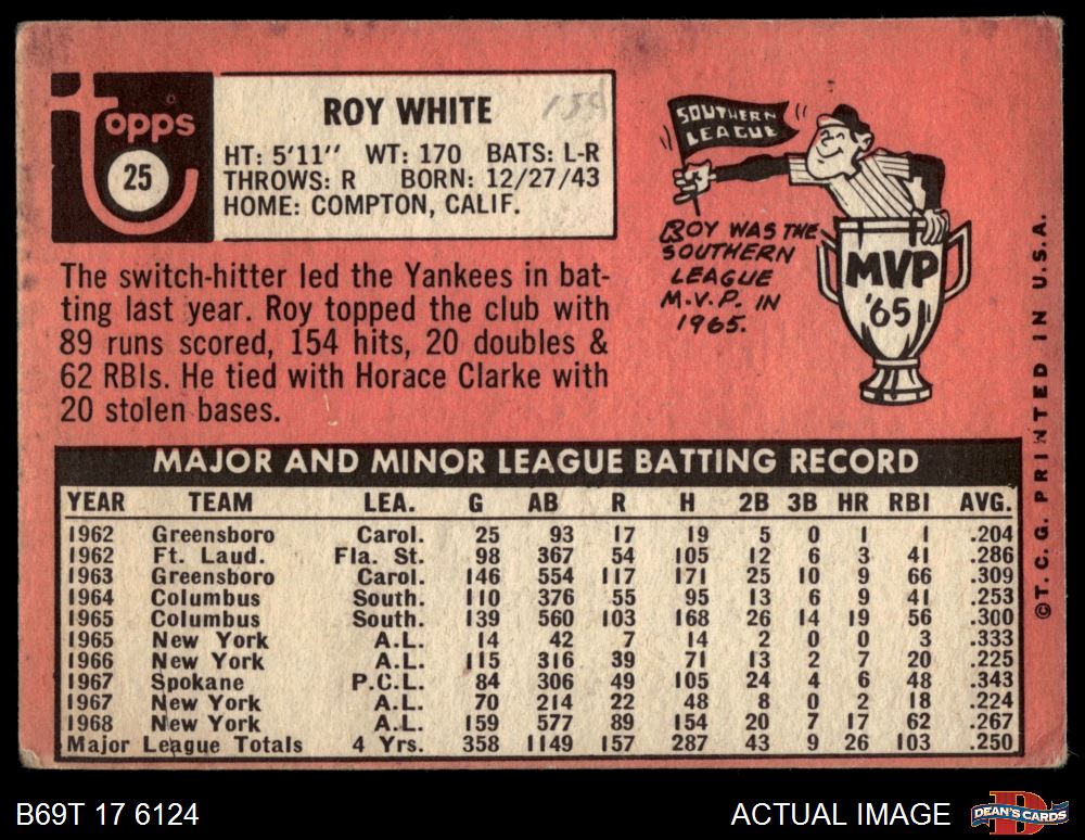 1969 Topps #25 Roy White 1.5 - FAIR