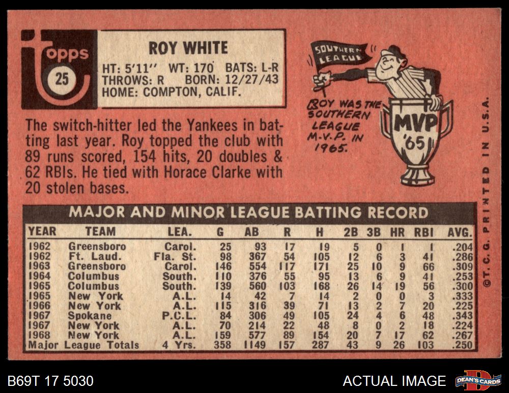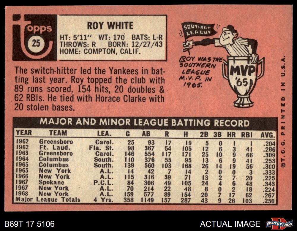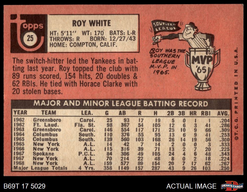 1969 Topps #25 Roy White 4 - VG/EX