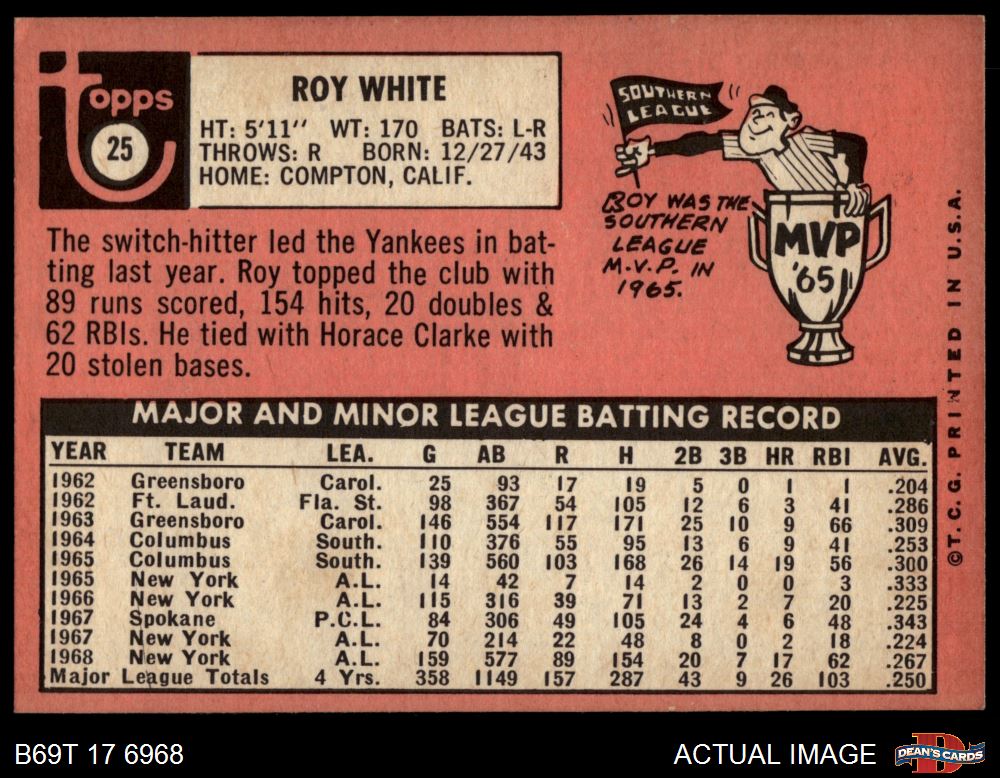 1969 Topps #25 Roy White 5 - EX