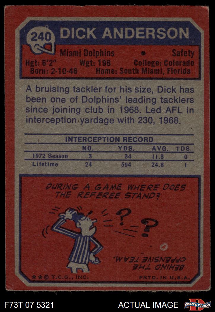 1973 Topps #240 Dick Anderson 2 - GOOD