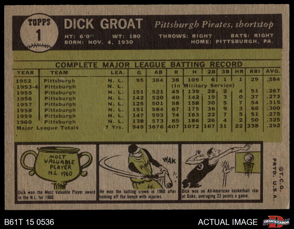 1961 Topps Baseball Cards (10,654 available)1961 Topps Pirates (844 available)