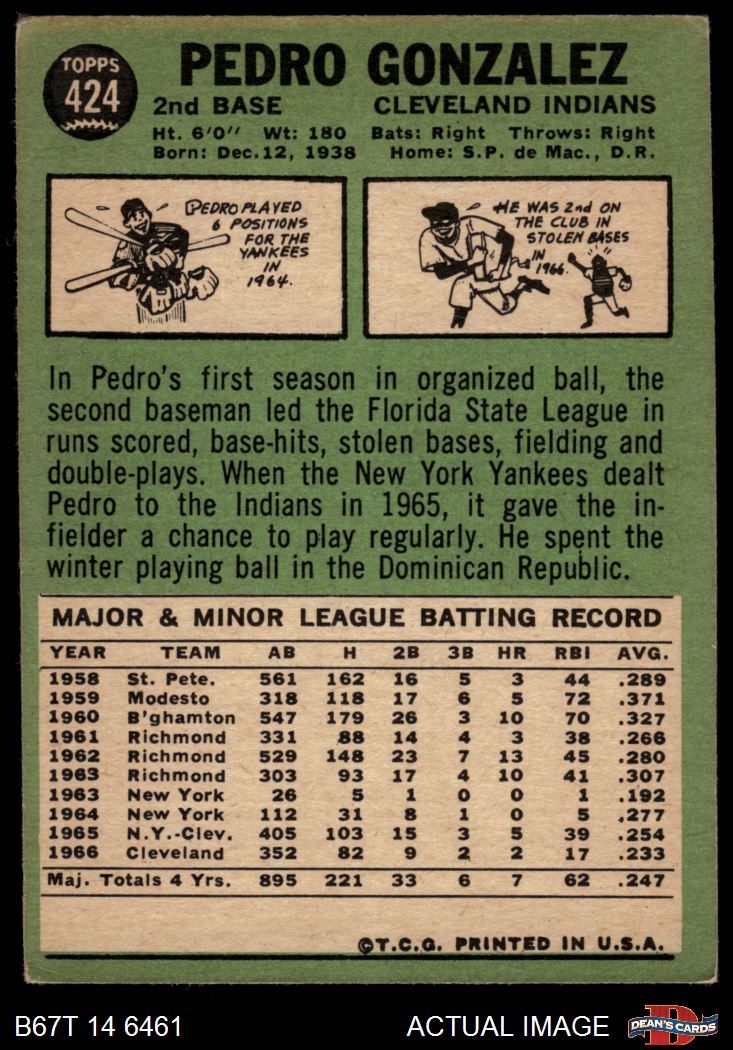 1967 Topps #424 Pedro Gonzalez Front Thumbnail