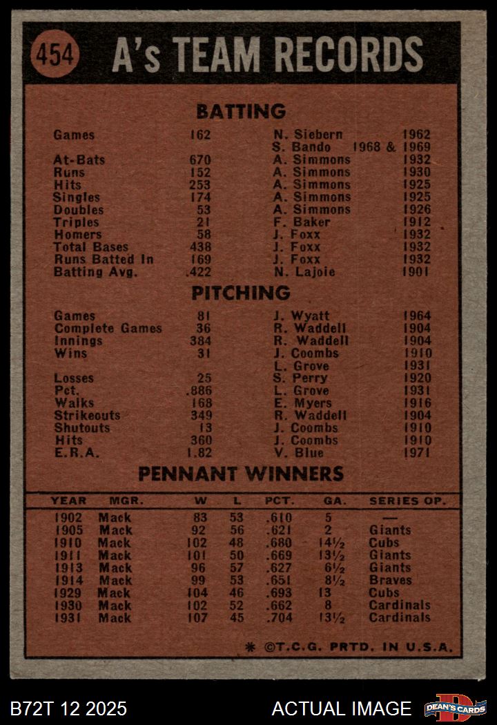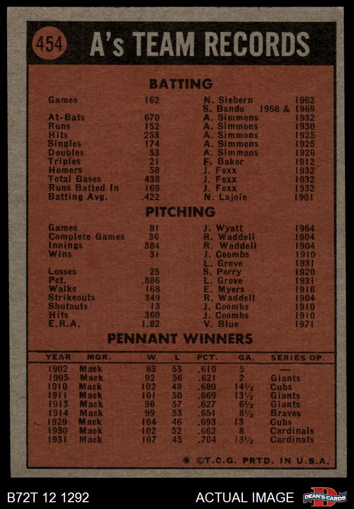 1972 Topps #454 A's Team 4 - VG/EX