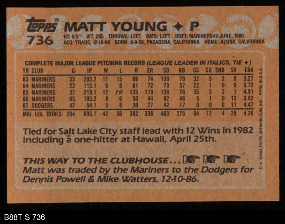 1988 Topps #736 Matt Young 8 - NM/MT