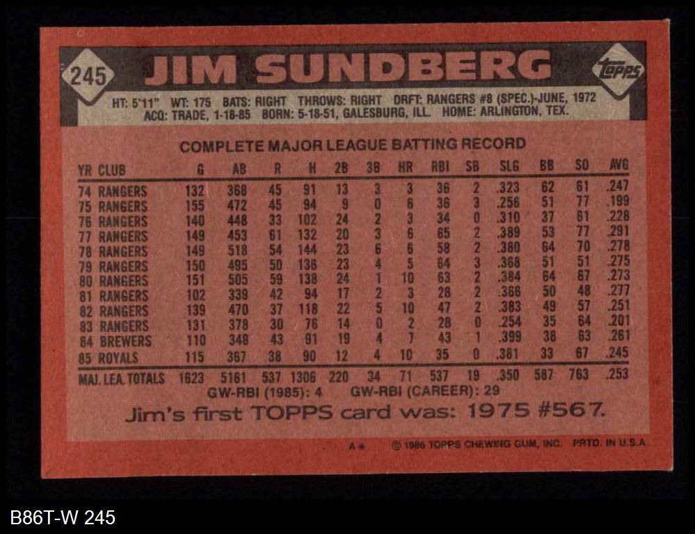 1986 Topps #245 Jim Sundberg 8 - NM/MT