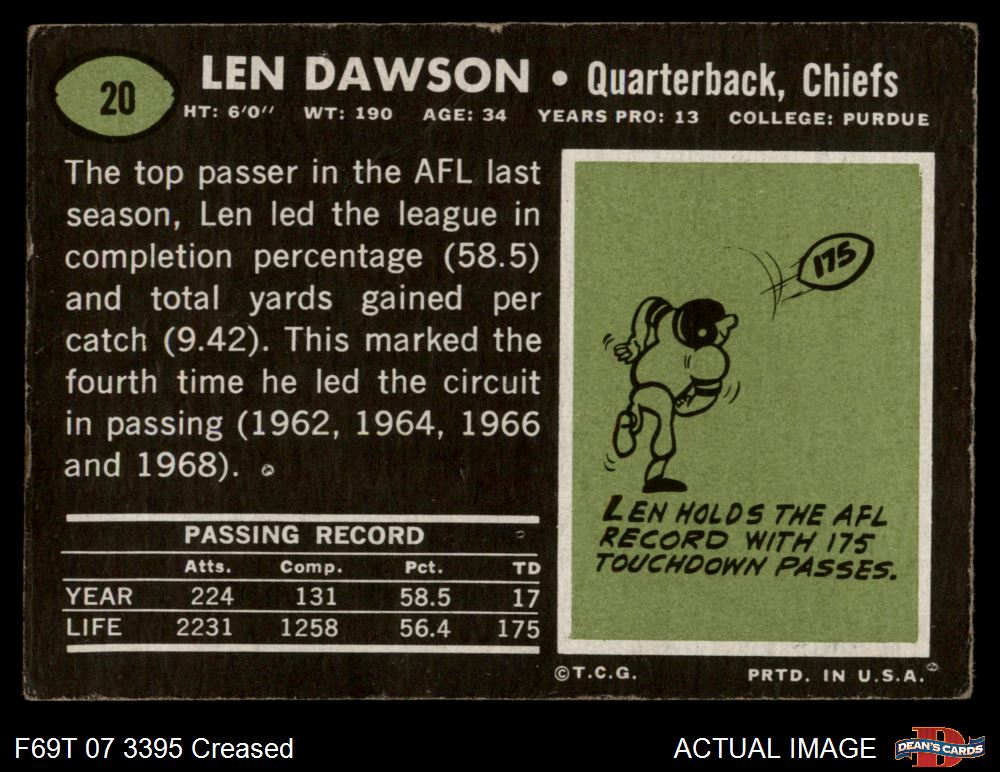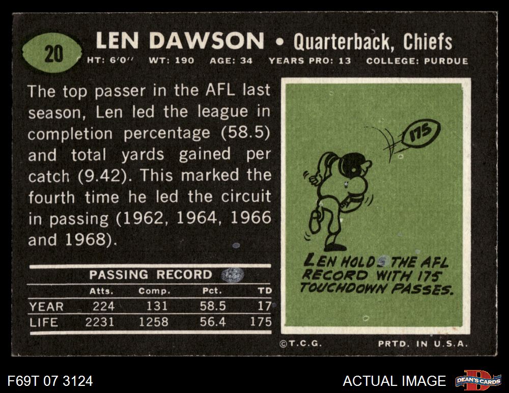1969 Topps #20 Len Dawson 2 - GOOD